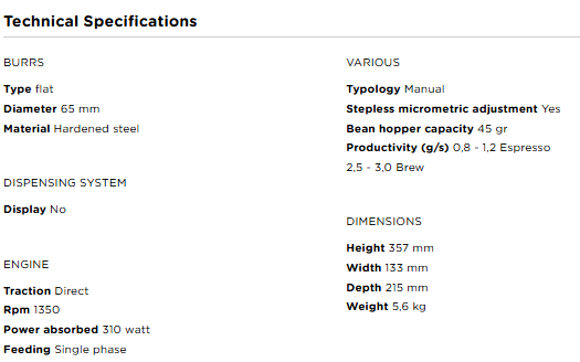 - "High Speed" Maintenance- Easy Maintenance: The burrholder set can be dismantled removing only 9 screws, permitting quick replacement and cleaning of burrs. Saves times & coffee.