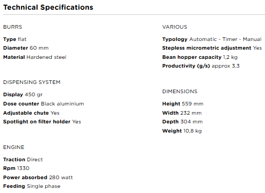 - Easy Maintenance: The burrholder set, that can be dismantled removing only 9 screws, permitting quick replacement and cleaning of burrs. Saves times & coffee.